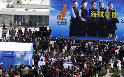 昨日,海航在东方红广场搭台公开招聘空乘