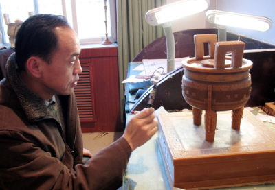 2007年3月28日,设计师孙红从数百张设计图中精选出了奥运盛鼎方案