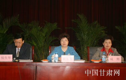 甘肃省人大常委会副主任崔玉琴(中),副省长咸辉(右),省政协副主席、省卫生厅厅长侯生华出席会议。