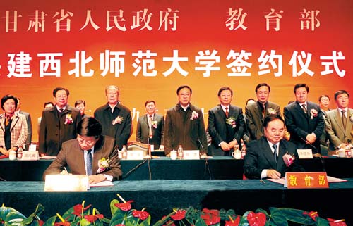 3月16日,甘肃省政府与教育部共建西北师范大学协议在兰州签署。本报记者 吕建荣 摄