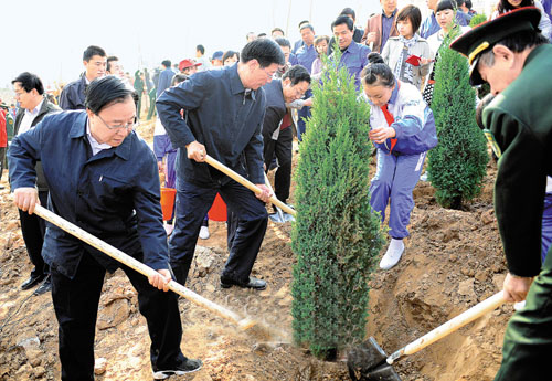 参加今天义务植树的省上领导有:陆浩、徐守盛、陈学亨、刘伟平、励小捷、侯长安、刘永富、罗笑虎、刘立军、姜信治、陆武成、洛桑灵智多杰、朱志良、崔玉琴、咸辉、郝远、邵克文、德哇仓、张津梁、李永军、侯生华、马国瑜及夏红民、李沛文、石晶等。