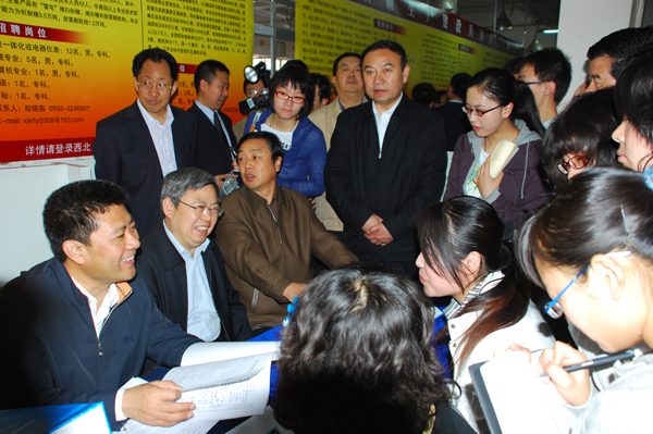 甘肃省副省长刘永福(左二)亲临招聘会现场。 贾笑云 摄