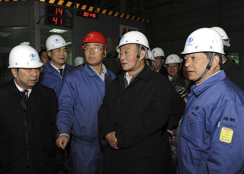 吴邦国在位于嘉峪关市的酒泉钢铁集团公司调研。新华社记者 李学仁 摄