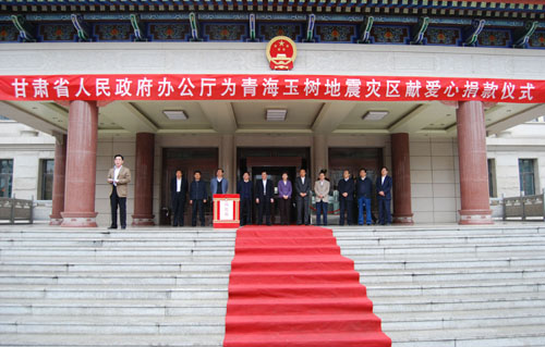 4月19日上午,省政府办公厅举行向青海玉树地震灾区献爱心捐款活动,广大干部职工积极参与,共为地震灾区捐款49600多元。