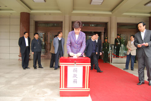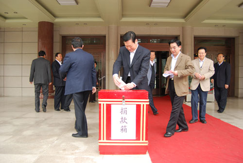 捐款仪式上,副省长咸辉、郝远,省长助理夏红民,省政府秘书长李沛文带头进行了捐款;因公出差在外的副省长也委托工作人员捐了款。
