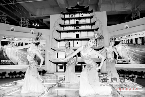 敦煌“莫高窟”走进兰洽会展馆。本报记者 高樯 摄