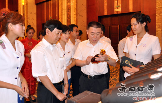 “中国·河西走廊第一届有机葡萄美酒节“开幕式上,甘肃省人大常委会副主任张开勋,省政协副主席李永军,国家商务部市场运行调节司副司长路政闽,中国酿酒工业协会葡萄酒分会理事长王琦、秘书长王祖明,西北农林科技大学副校长、博士生导师、著名葡萄酒专家李华,澳大利亚新南威尔市葡萄酒产业和发展委员会葡萄栽培专家、托卡尔农学院教授安东尼,新西兰东方理工学院葡萄酒科学研究组负责人、科学与技术系教授马尔科姆,阿根廷驻华商务代表圣迪亚哥,美国加州月色美地国际红酒集团首席执行官唐杰森,外交部北京外交人员服务局总经理高建国,北京交远通达商贸有限公司总经理王国庆,香港葡萄酒商会会长何耀康,香港葡萄酒商会质量规范委员会主席许铁松,香港大公报甘肃办事处主任杨韶红,上海市酒类专卖局局长卢荣华,新疆自治区酒类商品管理局局长金小平,上海阁乐葡萄酒有限公司董事长朴爱立等领导和中外葡萄酒专家出席开幕式。出席开幕式的还有有天津、上海、安徽、新疆、山东烟台代表团以及中国酿酒工业协会葡萄酒分会、中国酒类流通协会、宁夏葡萄酒产业协会、广东省酒业协会、澳门台湾总商会代表团。国内外葡萄酒知名企业美国加州月色美地国际红酒贸易(北京)有限公司、外交部北京外交人员综合服务公司、上海建发集团公司、烟台张裕、天津王朝、宁夏贺兰山、新疆楼兰也组团参会。甘肃省直有关部门负责人,甘肃省葡萄酒产业协会高级顾问、会长、副会长、理事,武威市、张掖市、酒泉市、嘉峪关市、敦煌市代表团,省内商务、酒类商品管理局负责人也参加兰州主会场各项活动。