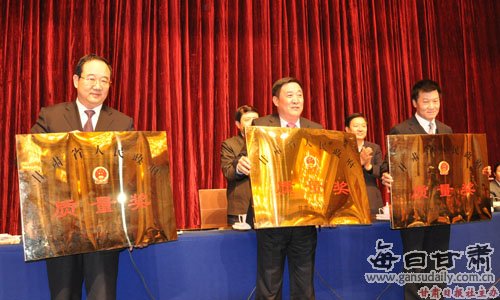 会议表彰了获得首届甘肃省人民政府质量奖的金川集团公司、酒钢集团宏兴钢铁股份有限公司、大禹节水集团股份有限公司,各奖励100万元。同时,表彰了全省质量工作先进单位、先进个人,以及甘肃名牌产品生产企业。