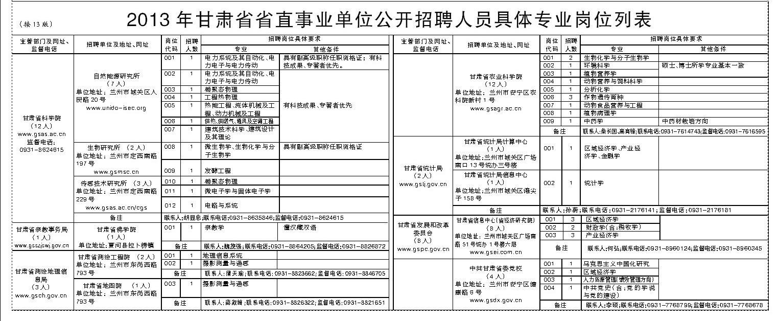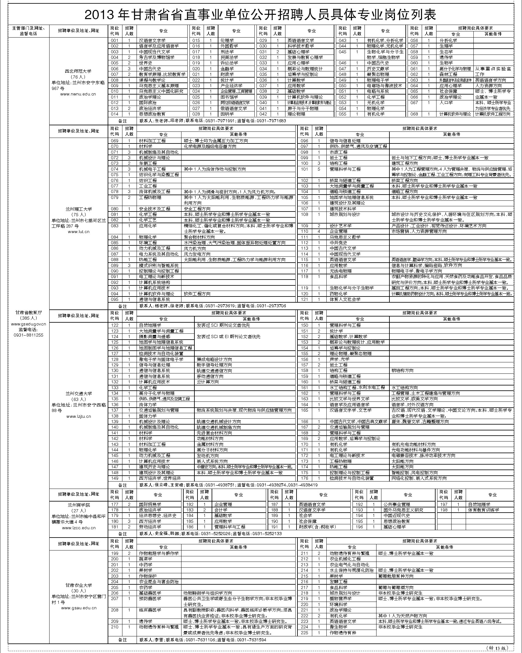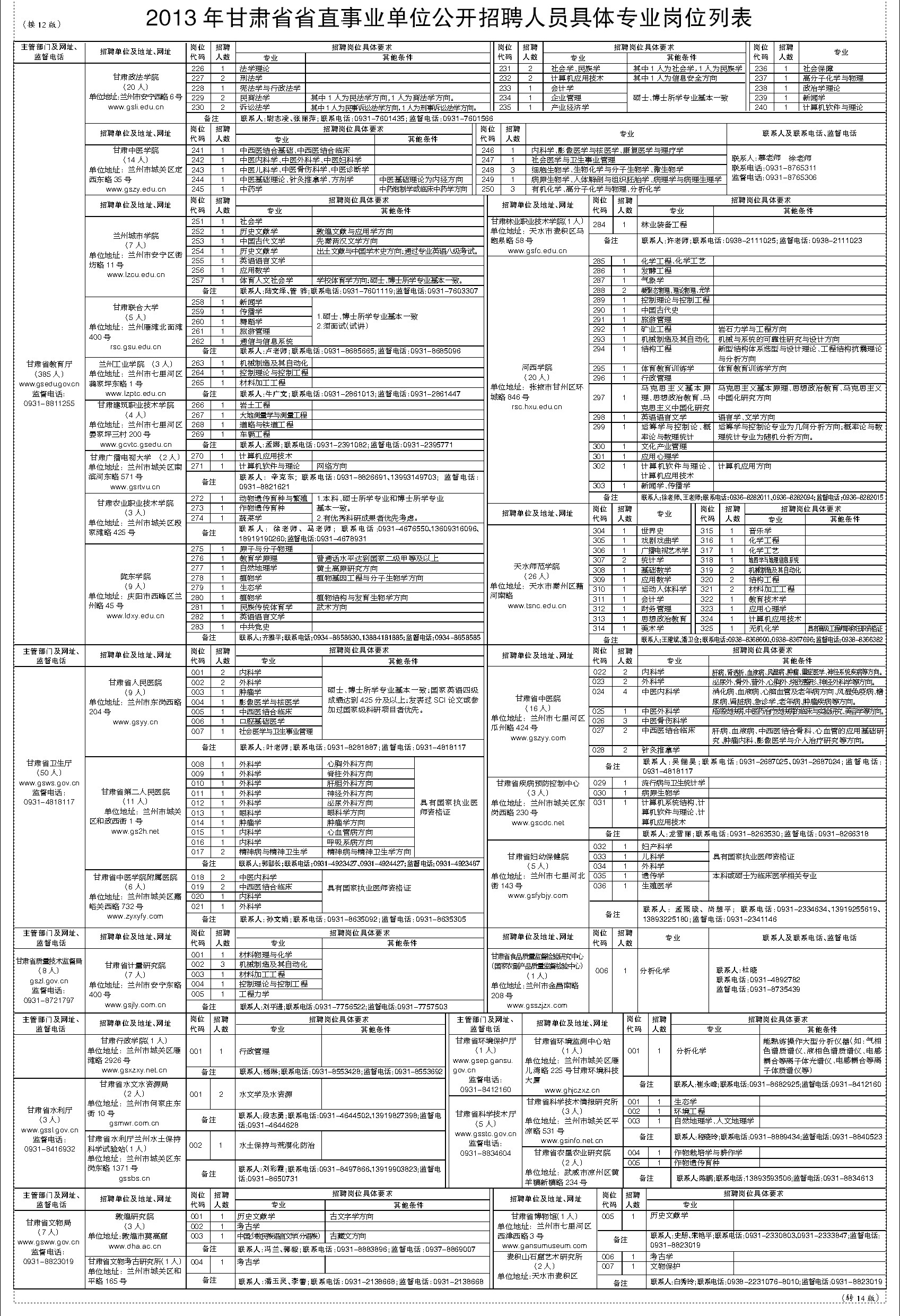 根据工作需要,按照《甘肃省事业单位公开招聘人员暂行办法》(甘办发〔2012〕22号)规定,省直46个事业单位采用考核方式,面向社会公开招聘博士研究生502人。现将有关事项公告如下: