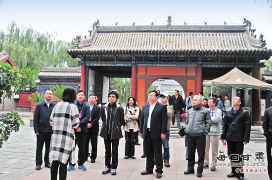 甘台旅游交流合作团在张掖大佛寺考察。