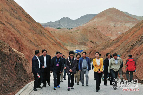 甘台旅游交流合作团在张掖丹霞地质公园考察。