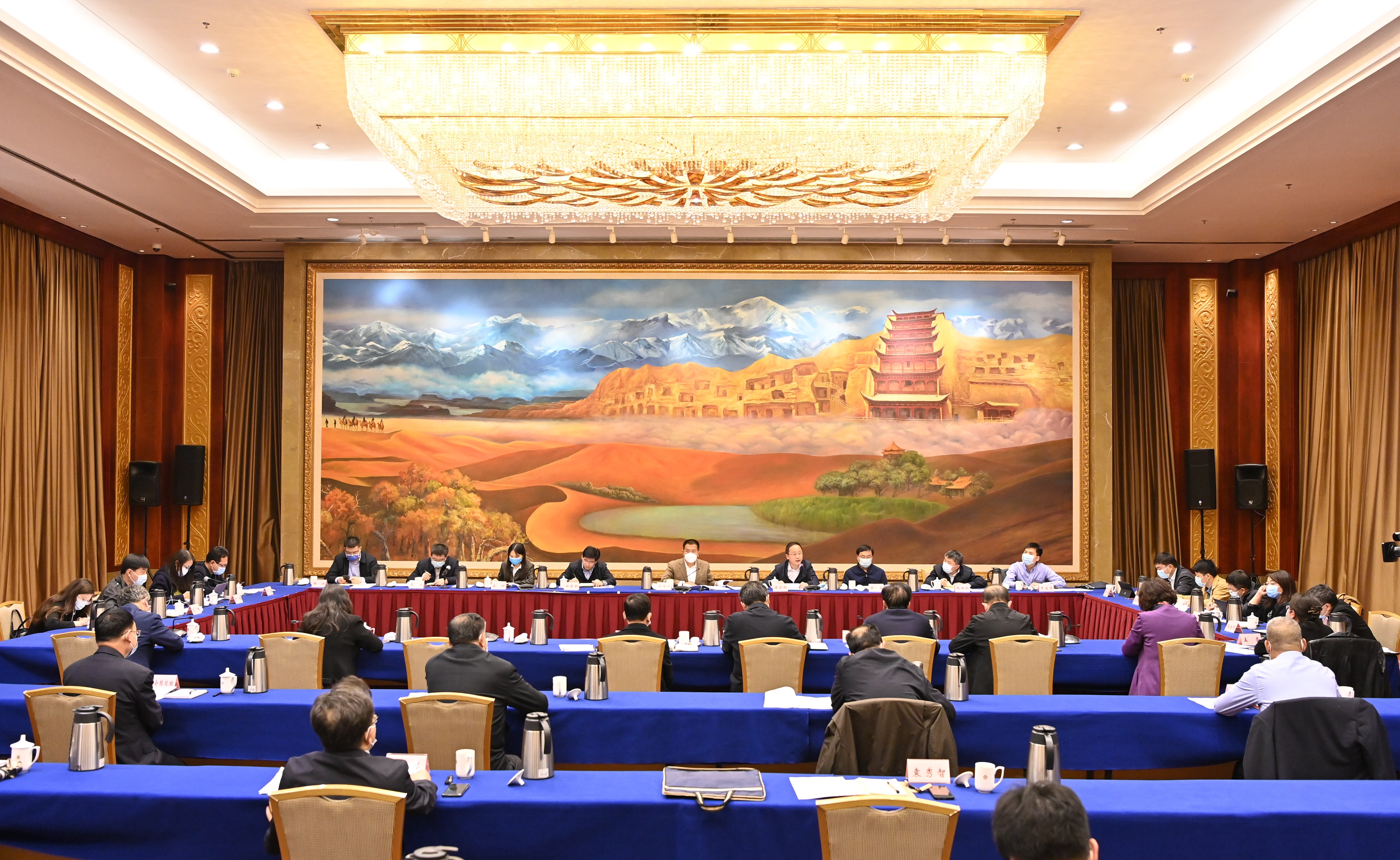 省政府与国务院联防联控机制综合组甘肃工作组见面会19日下午在兰州举行。国务院联防联控机制综合组甘肃工作组组长、国家卫生健康委副主任雷海潮,省长、省疫情联防联控领导小组组长任振鹤出席会议并讲话。