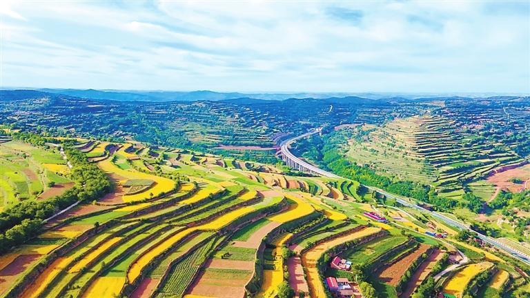 平凉庄浪梯田:庄浪梯田地处黄土高原丘陵沟壑区的庄浪县,原本是沟壑纵横、土地贫瘠的模样,当地百姓用数十年的时间,一镢一锨在黄土塬上开垦出层层梯田。站在山巅俯瞰,梯田如天梯般从山脚蜿蜒至山顶,田埂线条流畅优美,将原本破碎的黄土坡切割成规整的“台阶”。春季时,嫩绿的禾苗铺满梯田,像是给黄土坡披上了一层翡翠色的纱衣;到了秋季,金黄的庄稼成熟,层层叠叠的“金梯”在阳光下闪耀,风一吹便掀起金色的波浪。雨水丰沛时,田埂间的积水倒映着蓝天与白云,让这片黄土梯田多了几分灵秀,成为黄土地上最具生命力的地貌景观。