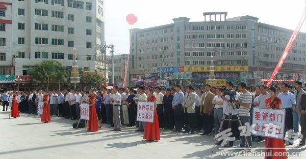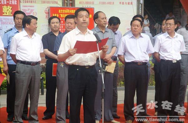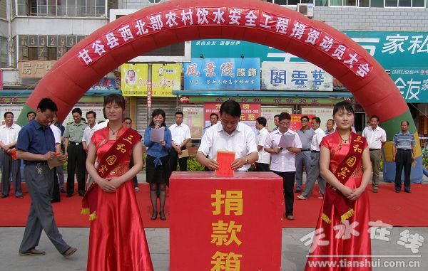 为了动员全县干部职工、企事业单位和社会各界人士统一思想,提高认识,发扬扶贫济困、无私奉献精神,积极踊跃为我县西北部农村饮水安全工程捐款援助,为早日解决我县西北部干旱山区群众吃水难问题奉献爱心、贡献力量。6月10日上午,甘谷县在大什字文化广场举行西北部农村饮水安全工程捐款动员大会。