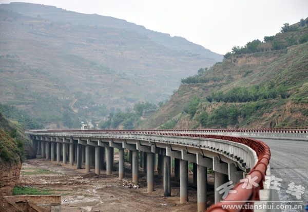 天定高速公路是国家“十一五”规划的主干线的重要组成路段,是一条惟一的连接横贯我国北部东西主要通道,是全省规划的“四纵四横四重”公路网主骨架的第三横的主要组成部分。天定高速公路在甘谷境内路线全长36.8km。从关子镇支流华西沟设隧道群穿越宋家岔、白家湾,从大砂沟下游出口,展线出沟至甘谷县城西,跨过G316,然后路线折向西,布设在渭河南岸,经二十里铺,在程家新庄跨过陇海铁路,继续沿渭河南岸布设,在磐安燕家庄跨渭河至北岸,经刘家河湾,沿渭河北岸岸边布置,经杨家庄、谢家坪,进入武山县。天定高速公路项目惠及千家万户,对于加强甘谷交通运输综合体系建设、加快社会主义新农村建设具有十分重要的意义。
