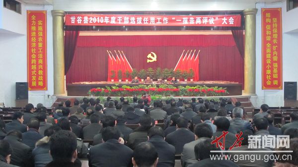 12月31日,甘谷县召开2010年度干部选拔任用工作“一报告两评议”暨县委原任书记履行干部选拔任用工作职责离任检查民主评议会议。