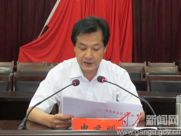 (县委副书记申君明宣读《甘谷县乡镇党委换届工作方案》)