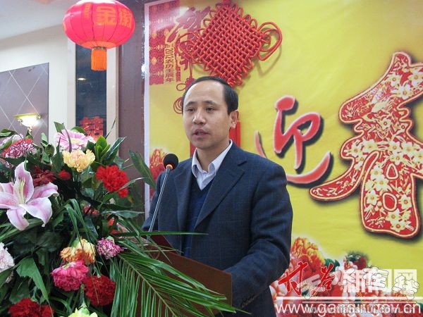 县委书记贾忠慧致辞,县委副书记、县长申君明主持团拜会。