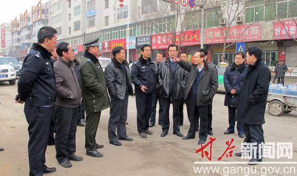1月30日,春节长假上班第一天,甘谷县委书记贾忠慧,县委副书记、县长申君明带领县公安、住建、国土、综合执法、交警队等单位负责人,先后深入县城像山路、西关十字、大十字、菜市口、新城路、火车站、北滨河路等城区重点路段,就“节后”城区环境卫生秩序等工作进行了全面细致的检查。