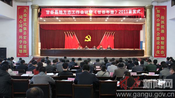 会议由县委常委、宣传部长董珺主持,县委常委、统战部长马骥作了重要讲话,副县长牛武军与各乡镇签定了地方志工作目标管理责任书并就2012年地方志工作作了安排部署,县志办负责人作了2012年全县地方志工作报告,会议还对《甘谷年鉴》(2011)进行了首发仪式。