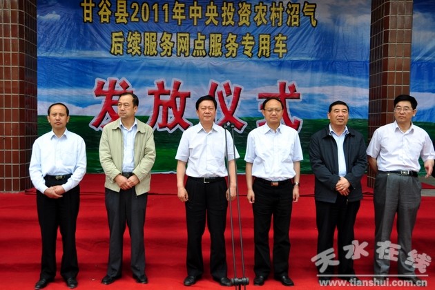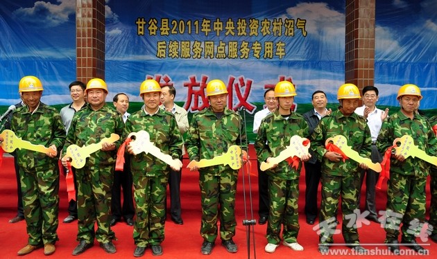 6月6日上午,甘谷县举行中央投资农村沼气服务网点专用车发放仪式。市委副书记、市政协主席杨维俊,市人大常委会副主任宋博华、副市长王钧、市政协副主席杨发元出席发放仪式。