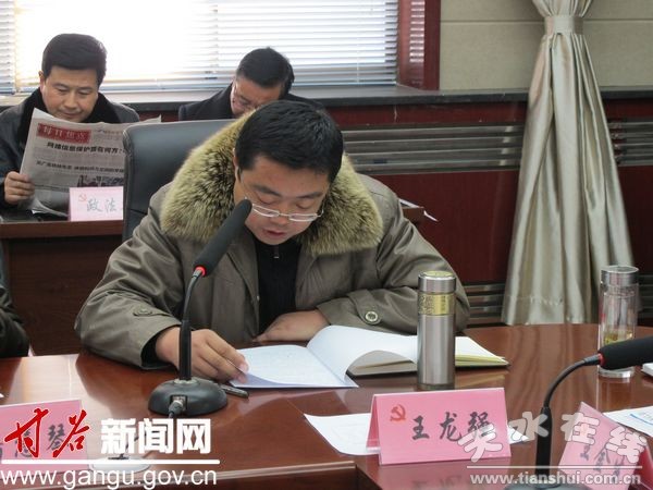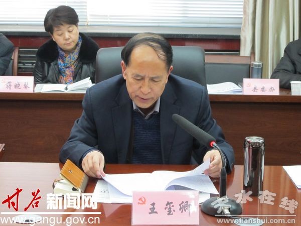 12月31日,甘谷县委书记贾忠慧主持召开县委中心组学习会议。会议传达学习了中央经济工作会议精神、中央农村工作会议精神、王岐山同志在中央纪委监察部机关全体党员干部会上的重要讲话精神、天水市政府工作报告文件精神、天水市政协会议精神。