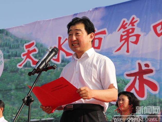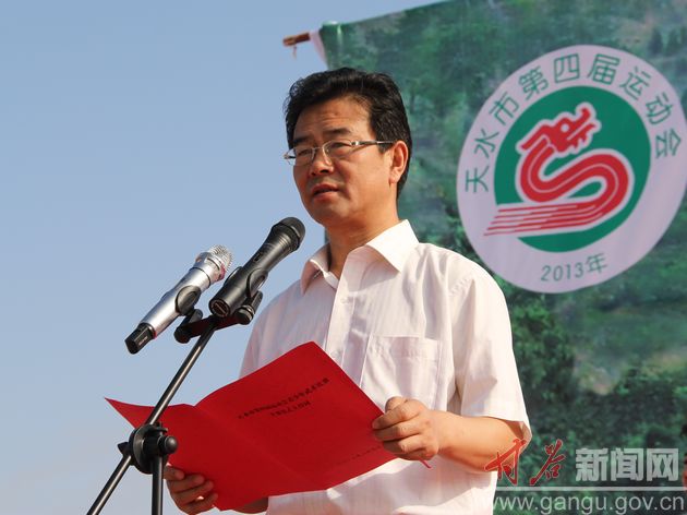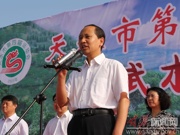 (甘谷县委书记贾忠慧宣布天水市第四届运动会青少年武术比赛正式开始)