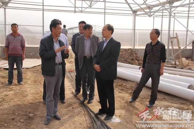 10月11日,甘谷县委书记贾忠慧带领县委办、农业局、果业局深入磐安镇五坪现代农业设施示范园区检查指导园区建设情况。