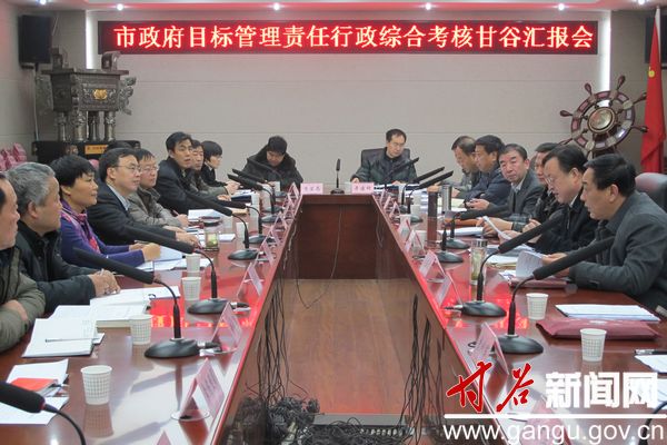 12月25日,市政府副秘书长张有信带领由市政府法制办、市委宣传部、市安监、卫生、教育、旅游、科技等部门组成的考核组,对甘谷县2013年市政府目标管理责任行政综合工作完成情况进行了全面考核。县委常委、副县长邵宏伟,副县长潘慧琴及相关部门负责人一同参加考核。