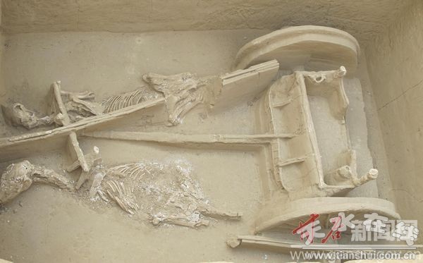 毛家坪遗址位于渭河南岸台地,总面积约60万平方米,分沟东和沟西两部分。沟西的北部为居址区,大部分被村庄叠压,沟西的南部为墓葬区;沟东为墓葬区,严重被盗。2012年早期秦文化联合考古队开始对毛家坪遗址进行发掘,当年发掘地点共3处,即A、B、C点,A、C点位于沟西居址区,共发掘灰坑210余个,多数属东周时期,有西周时期遗存;B点位于沟东墓葬区,发掘墓葬21座、车马坑2座,墓葬分洞室墓、竖穴土坑墓两类,年代从春秋早期延续到战国中晚期。2013年发掘地点共6处,即D、E、F、G、H、I点,发掘面积近2700平方米,发掘墓葬、房址、陶窑、灶址、灰坑、灰沟等各类遗迹735处,其中墓葬153座,出土铜器、陶器、玉石器、骨角器、铁器等各类遗物1000余件。两年的勘探发掘工作显示,毛家坪遗址应与古文献记载的某处历史名城或县邑对应,可能是古冀县的县治。发掘的周代秦文化遗存,为研究早期秦文化及其编年、秦人的迁徙路线、秦与西戎的关系、秦人车马形制等提供了重要资料。