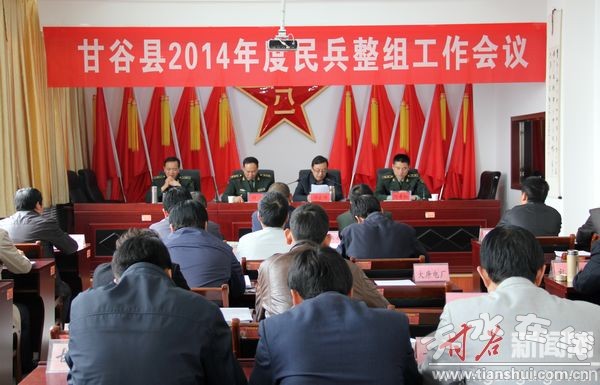 4月25日,甘谷县召开2014年度民兵工作暨整组工作会议。县委常委、副县长邵宏伟,县委常委、人武部长田晖,各乡镇党委书记、武装部长,县直相关部门负责人及县人武部全体干部职工共50余人参加会议。