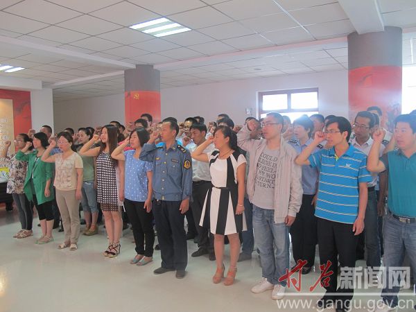 为纪念中国共产党成立九十三周年,继续深化开展党的群众路线教育实际活动,弘扬雷锋精神,知荣辱、树正气、讲奉献,积极践行社会主义核心价值体系,6月27日来自全县21个县直机关党委的62名新党员在甘谷红军长征纪念馆举行入党宣誓仪式。新党员列队面向党旗,举右手齐肩握拳,在领誓人逐句领读下,进行庄严宣誓。