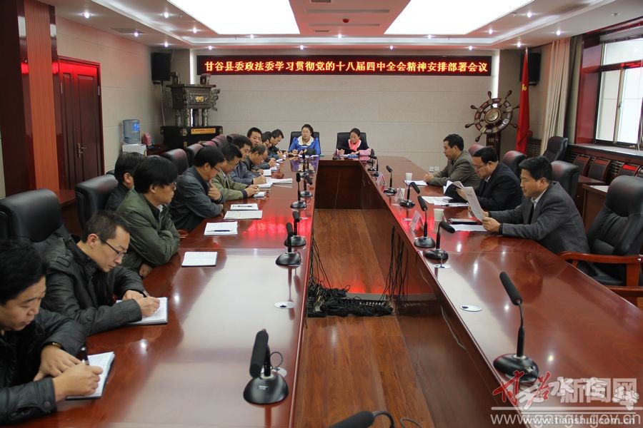 10月31日上午,甘谷县委政法委召开机关全体人员会议,组织集中学习党的十八届四中全会精神。县委常委、政法委书记马骥主持会议并讲话,县委政法委副书记王小平带领机关全体人员学习了十八届四中全会精神。