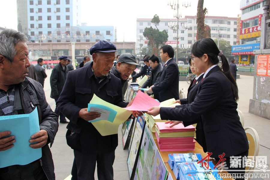 深入开展“法律七进”活动。在各局机关开展了“学法用法示范机关”创建,“学法用法模范公务员”争创活动,使干部职工牢固树立和自觉践行执法为民、公平正义的理念,不断提高依法管理和服务社会水平,加强了机关公职人员学法用法制度的落实。组织法律服务工作者深入农村开展“送法下乡”活动,通过举办村干部、村民代表法律知识培训班,培养农村法律明白人,为广大农民群众解答有关土地承包、农民外出务工、婚姻家庭、经济纠纷等方面的法律咨询。各普法依法治县成员单位在全县5个社区开展了内容丰富、形式多样的宣传活动,组织普法宣传队为社区干部群众举办法治讲座。加大家庭、学校、社会三位一体的青少年法治教育建设,定期研究解决青少年法治教育工作中的突出问题。加强对学校法治教育师资的培训,进一步规范法治副校长、法治辅导员工作制度,共举办法治公开教育课累计26次。通过宣传日、宣传周、宣传月等形式大力宣传社会保障、安全生产等与职工切身利益相关的法律法规知识,积极为企业职工提供法律咨询和法律援助,切实维护了企业职工的合法权益。截至目前,共开展法治宣传教育活动6场,发放宣传资料20000余份,其中结合党的群众路线教育实践活动印制《农村常用法律知识100问》3000册;结合“双联”行动印制《农村常用法律知识》8000册;印制《甘肃省法制宣传教育条例》等宣传彩页8500余份。