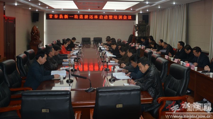 王龙强主持会议,谢辉宣读了《甘谷县新一轮退耕还林总体工作方案》,县林业局负责人传达了全省新一轮退耕还林启动培训会议精神。