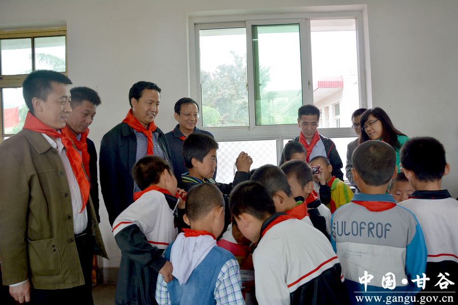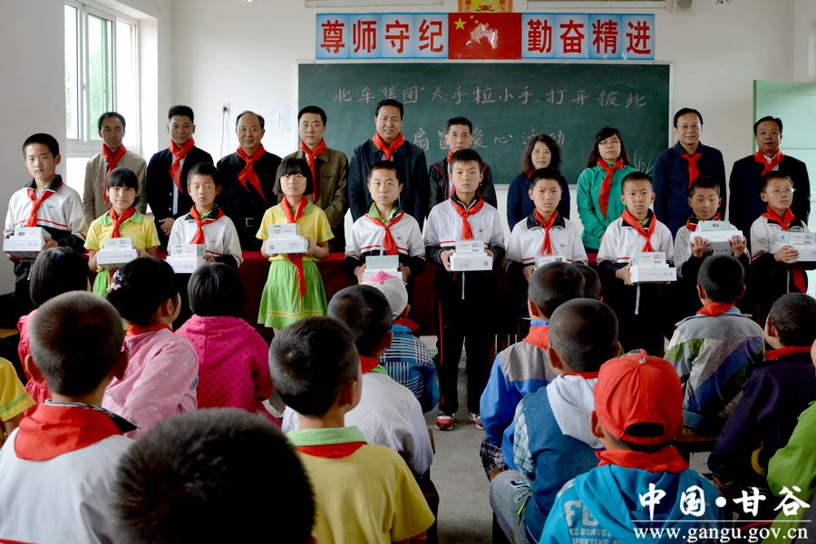 5月14日,中国北车集团工会主席何凤华、总部工会主席朗杰一行,来甘谷县磐安镇毛坪村北车希望小学开展“大手拉小手,打开彼此一扇窗”爱心捐赠活动。县委常委、宣传部长张庆元,副县长郭中校及磐安镇、县扶贫办负责人参加捐赠活动。