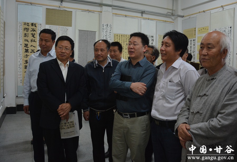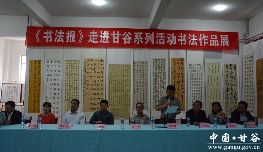 5月20日,由甘谷县委宣传部、《书法报》天水工作站、县文联主办的中国《书法报》走进甘谷系列活动书法作品展开展。中国《书法报》社长舟恒划,县委常委、宣传部长张庆元,县人大常委会副主任韩金鼎,副县长潘慧琴,县政协副主席李绪昌、田小龙出席开展仪式。