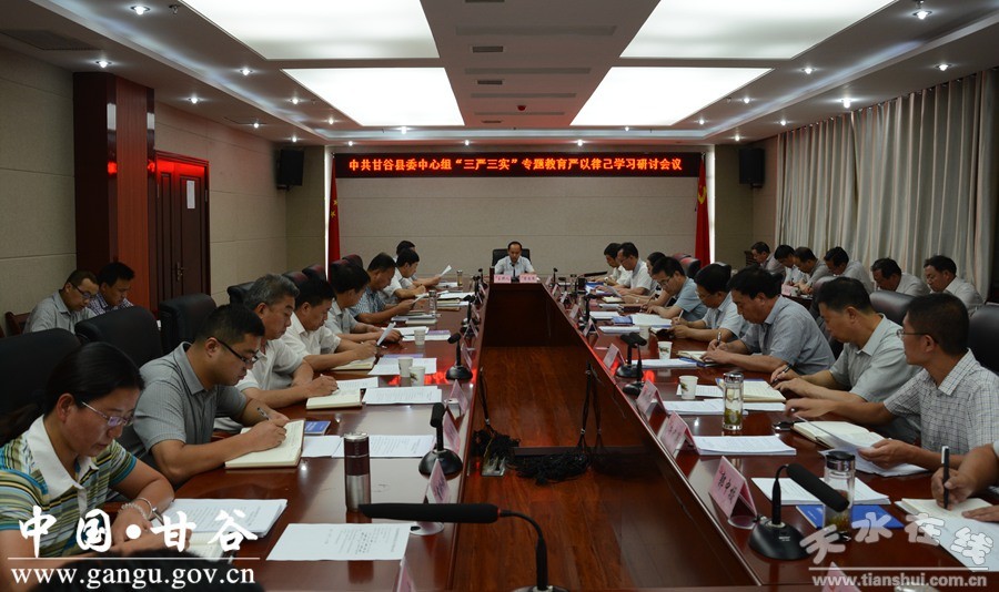 8月11日,甘谷县委书记贾忠慧主持召开中共甘谷县委中心组“三严三实”专题教育严以修身研讨会议。县人大常委会主任令建民、县政协主席马骥等县四大组织在家领导及其他县级干部、县委中心组成员单位负责人参加会议。