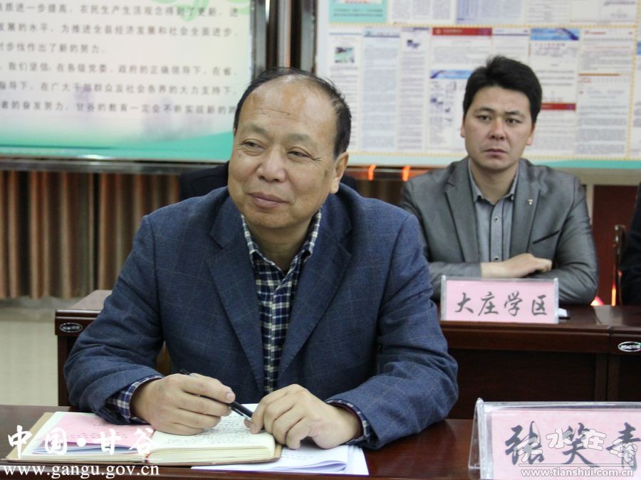 申君明全面汇报了近年来全县教育工作。他说,甘谷是全省教育大县。近年来,甘谷县认真贯彻党的教育方针,始终把教育摆在优先发展的战略地位,紧紧围绕“办好人民满意的教育”中心,牢牢把握促进公平与提高质量两大任务,全面落实政府职责,保障教育优先发展;狠抓基础设施建设,持续改善办学条件;积极加大统筹管理力度,协调发展各类教育;不断加强教师队伍建设,打造过硬教育团队;深化教育惠民工程,大力推进教育公平;加强校园安全联管,营造良好育人环境,全县教育事业得到了长足发展,为县域经济社会持续健康发展提供了强有力的人才保障。