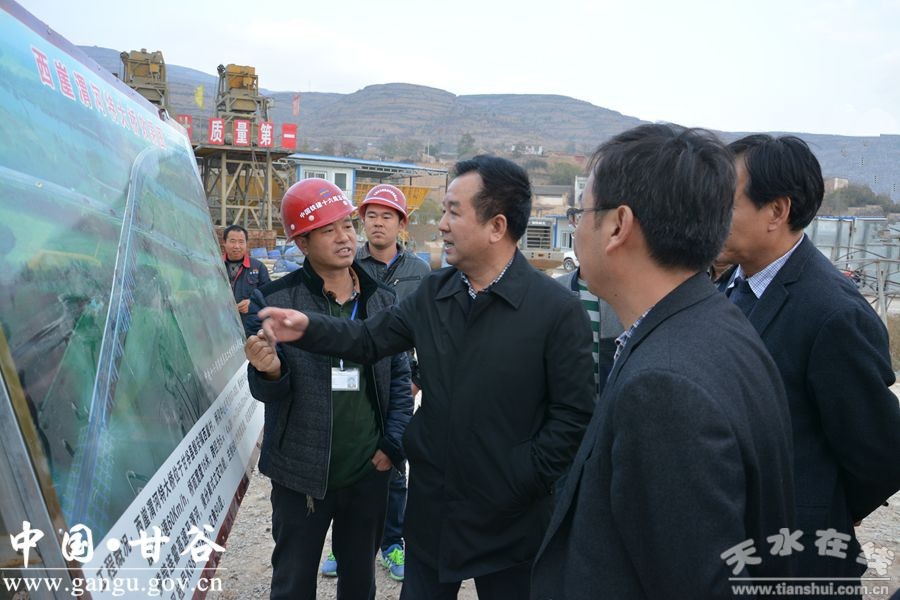 11月10日,天水市交通局局长杨永晖深入甘谷县新兴镇、磐安镇督查指导甘麦二级公路、G310线拓宽改造项目各标段建设情况。县委常委、副县长邵宏伟及县交运局负责人陪同督查。