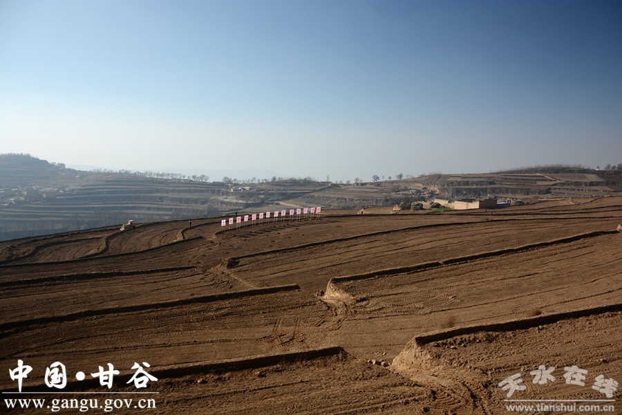 甘肃东部百万亩土地整治重大工程建设项目涉及甘谷县金山、新兴、安远、八里湾4乡镇35个行政村,分为8个子项目,规划5年实施(其中:2013年度为TS23号子项目,2014年度为TS22、TS24号子项目,2015年度为TS20、TS21子项目,2016年度为TS17、TS19子项目,2017年度为TS18子项目),总建设规模12.29万亩,总投资1.93亿元,资金全部为国家和省级投资,建设任务主要为土地平整、田间道路、农田防护林和生态环境保护等。截止目前,共完成土地整治7.8万亩,完成投资1.2亿元,惠及1.1万户5.2万群众。其中2013、2014年度实施的3个子项目(TS23、TS22、TS24)全部完成建设任务,2015年度2个子项目(TS20、TS21)正在加紧建设,预计2016年4月完成建设任务。5个子项目共完成土地平整1439.7万立方米,田坎(埂)修筑土方118.8万立方米,建设田间道134742.7米、生产路217033米,修建道路边沟81510米、涵洞(管)506座,栽植农田防护林为34434株,栽植沟头防护林154160株。