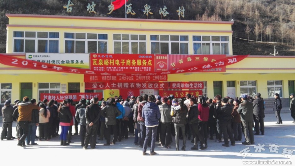 1月4日下午,甘谷县古坡乡瓦泉峪村委会大院里暖意融融,欢声笑语 ,由爱心人士魏成林发起的“大爱无疆 ·爱在甘谷·资助古坡困难家庭”的捐赠活动在这里举行。