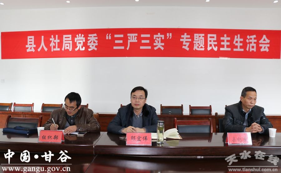 1月25日,甘谷县人社局党委召开“三严三实”专题民主生活会。县委常委、副县长邵宏伟,县纪委、县委组织部相关负责人出席指导会议;县人社局党委班子全体成员参加会议。
