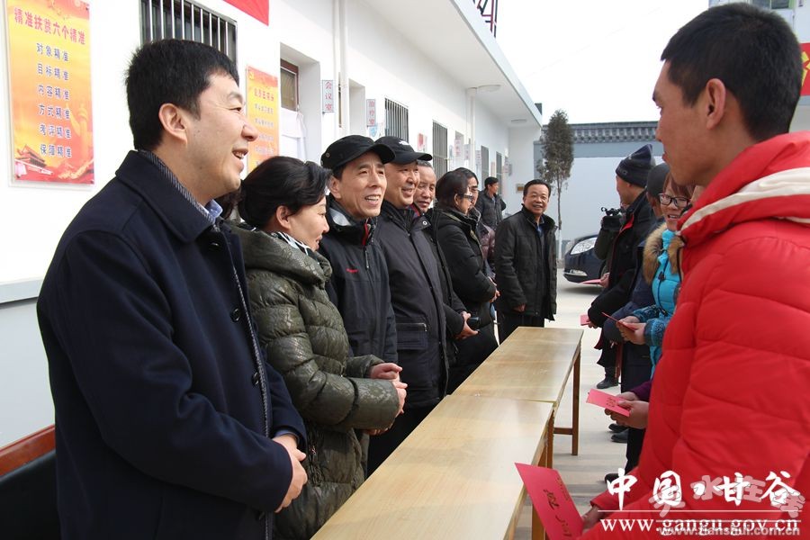 1月27日,新春佳节即将来临之际,中车集团行政总监何凤华、行政管理部部长王勇一行深入甘谷县新兴镇孙家坪村、金山镇常家庙村慰问贫困户,送上新春祝福和诚挚问候。县委副书记徐建华、副县长郭中校陪同慰问。