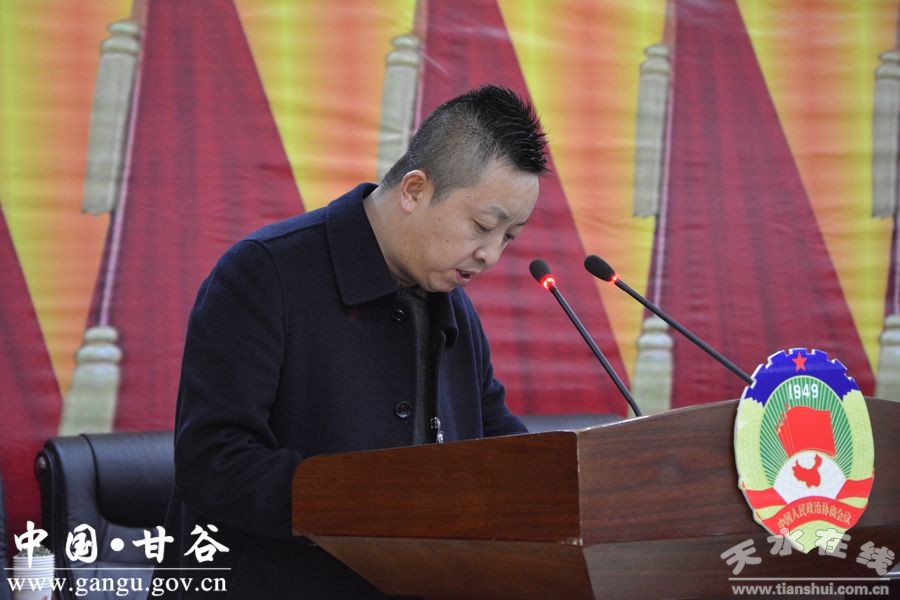 甘谷县政协主席马骥,县委副书记徐建华,县委常委、常务副县长孟晓龙,县委常委、统战部长潘慧琴,县政协副主席王金生、陈旭、董成斌、郑建子出席会议,县十二届政协委员参加会议。县政协副主席董成斌主持会议。