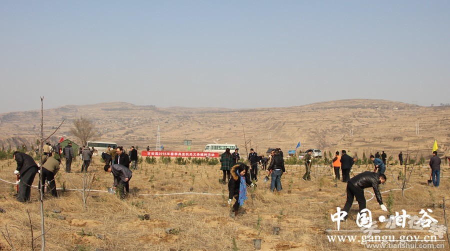 阳春三月,春风和煦,正是植树造林好时节。为了进一步增强干部群众植树护林意识,优化人居环境,改善生态环境,3月10日,甘谷县抢抓当前植树造林有利时节,组织千余名干部群众来到新兴镇雒家村参加植树活动,在全县掀起了植树造林新热潮。