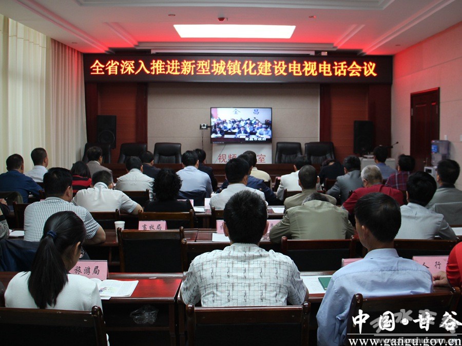 5月5日,全省深入推进新型城镇化建设电视电话会议在兰州召开。省委常委、常务副省长咸辉出席会议并讲话,省委常委、副省长李荣灿主持会议;金昌市、高台县、康县、甘州区党寨镇分别介绍了推进新型城镇化建设的做法和经验。