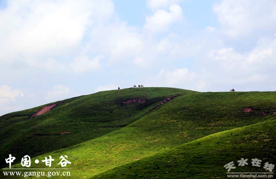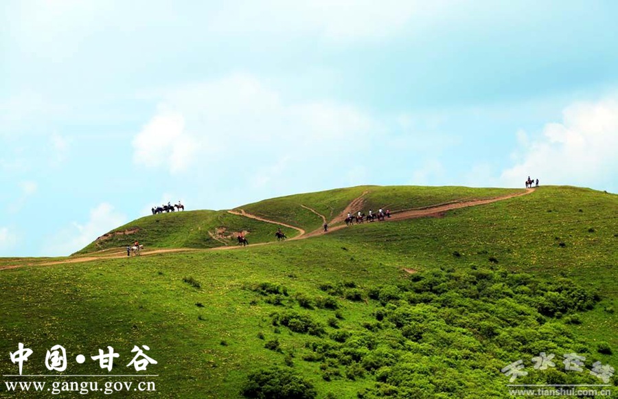 走进甘谷大地,沿着南部秦岭余脉驱车盘旋而上,来到古坡草原,但见群山绿草环绕,奇珍异树绚丽多姿,鸟语悦耳,花香扑鼻。骑骏马奔驰于山峦起伏、碧草连天的草原,吼上几声西北秦腔,秦人大胆追求、奋斗不息的性格尽显无遗。静谧的古坡,一时如海浪翻卷,令你忘却于天地之间,超然神游。