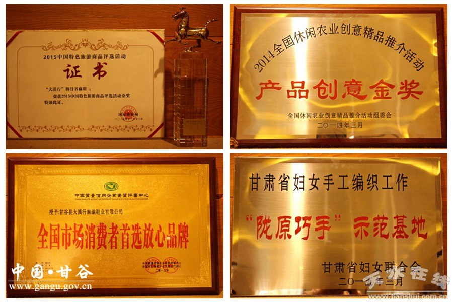 “大漠行”麻鞋是甘谷的一个文化品牌,也是甘谷人馈赠亲友、表达情感的地方特产,它以纯天然取料、纯手工制作、穿着柔软舒适而倍受消费者亲睐。最近,它作为甘谷首个、全国唯一一个麻鞋品类获“中国驰名商标”称号,并被国家旅游局评为全市唯一一个“中国特色旅游商品竹木类金奖”,市委、市政府重奖大漠行公司40万元,这是为什么呢?