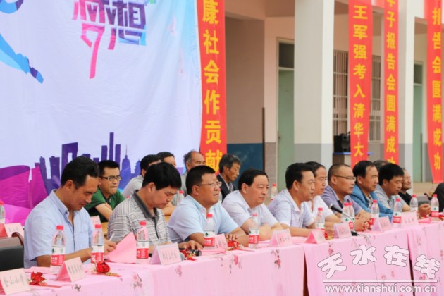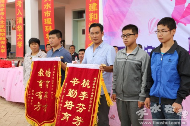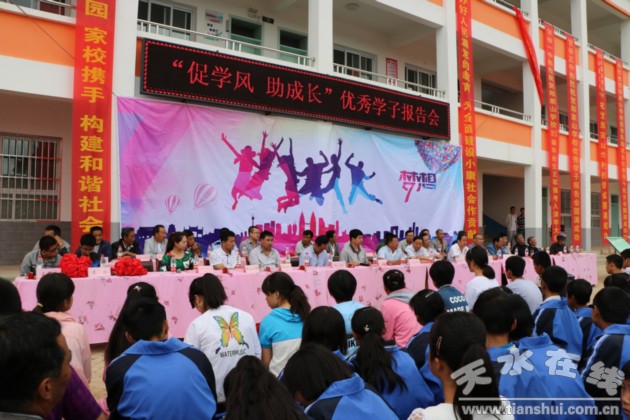 8月1日上午,甘谷县金山镇郑家山学校,人头攒动,彩旗飘扬,一场主题为“促学风,助成长”的优秀毕业生报告会正在这里举行,学校邀请前不久刚被清华大学、北京航空航天大学分别录取的金山镇藉优秀学子王军强、李隆先后向父老乡亲和同学们报告自己的学习成长情况,以此分享学习经验,激励后学发奋努力,早日成为栋梁之才。